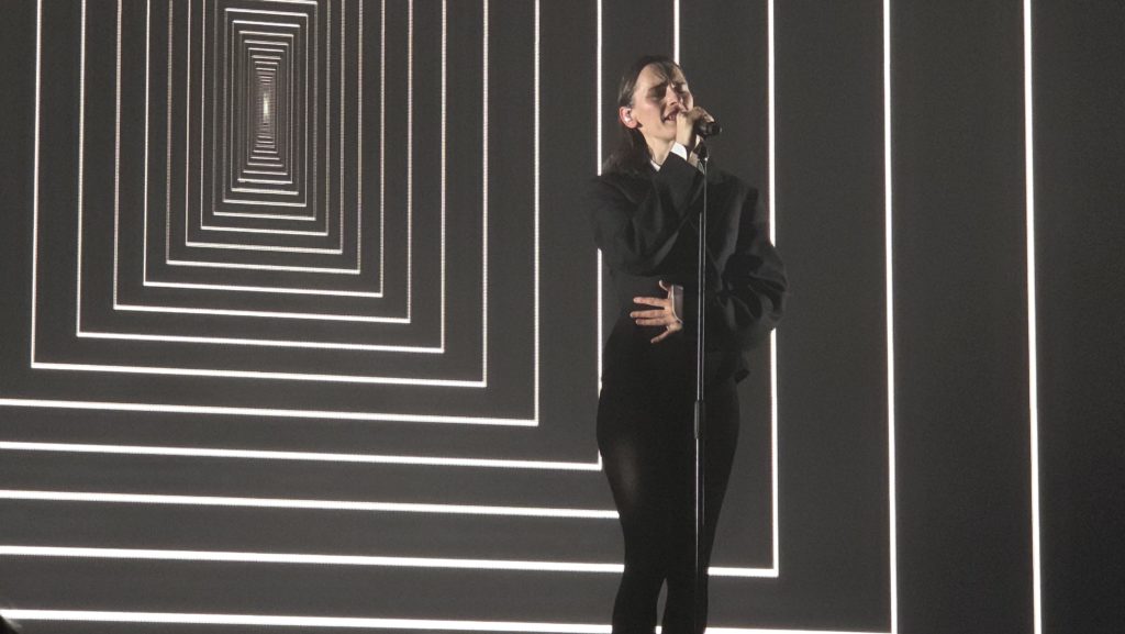 Si elle ne sort jamais plus sans son body-costume, en concert comme à la télé, Yelle a d’abord joué la mystérieuse, apparaissant de profil sur Le Grand Saut, dans une mise en scène étonnamment sombre mais parfaite pour faire monter la sauce. Accompagnée par GrandMarnier, et le plus souvent juchée sur une plateforme, elle a vite clarifié, à ceux entrés là par hasard, le programme de la soirée : faire la fête et danser. Tout le monde a compris, et j’ai découvert à quel point le sol de l’Olympia se mettait à rebondir dans de telles conditions. Je dois vraiment chercher loin pour trouver un défaut à la setlist (c’est un de mes morceaux favoris, il faut dire), laquelle faisait la part belle à L’Ère du verseau, sans négliger ses moments plus calmes (Vu d’en face, Un million). Quand a démarré Noir, Yelle, membre du jury de Drag Race France All Stars, a été rejointe par deux drag queens, qui ont tenu les rênes lors de la séquence karaoké qui a suivi. Une spectatrice très à l’aise a chanté Nuit de baise avec délectation, puis on a tous repris Florence en Italie, c’était super. Avec les paroles d’autres morceaux fréquemment projetées sur l’écran, le karaoké était de toute manière quasi-permanent.